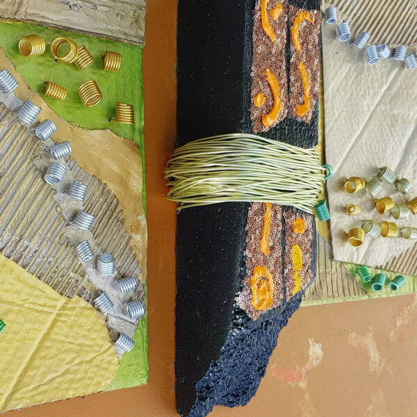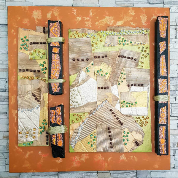 Relief sculpture,mix media on board.